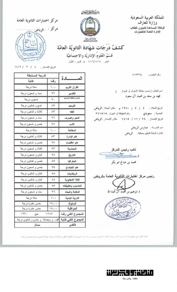 كيف اطلع شهادتي الثانوية العامة القديمة برقم الهوية أو نظام نور 1444
